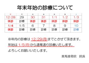 年末年始の診療のお知らせ